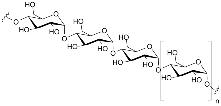 Amylose, a linear polymer of glucose can be made of thousands of glucose units. Amylose and amylopectin are the two components of starch.