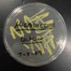 bacterial colonies grown on TSY agar. These bacteria hare heavily flagellated, so can move. See how colonies spread out in lobes.