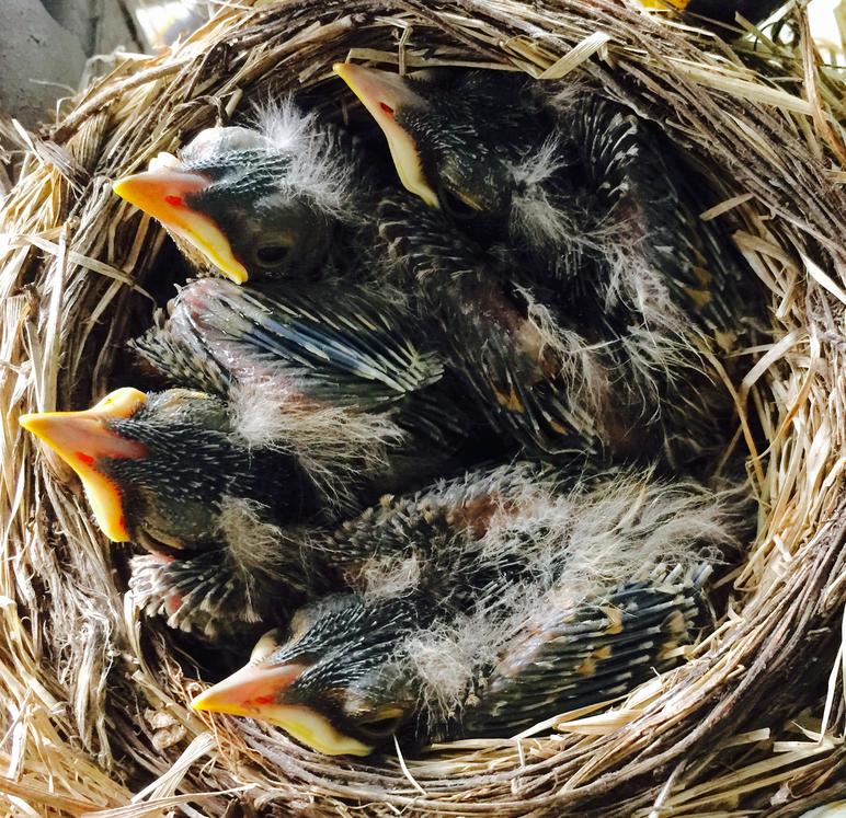 Every year American robins nest under the deck of our home. We watch nests succeed and fail, but have never documented development of the chicks. This spring, of 2015, we are photo-documenting two nests.