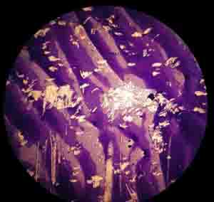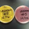 4 & 5. Mannitol Salt Agar viewed from bottom & top. Yellow side of plate is growing mannitol+ pathogen Staphylococcus aureus. Pink side of plate growing mannitol- normal flora Staphylococcus epidermidis.