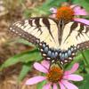 1.Bat house mounted on oak tree; 2. Eastern Tiger Swallowtail Butterfly on Purple Cone Flower; 3. Cicada exoskeletons; 4. Female English Bulldog; 5. Koi in pond